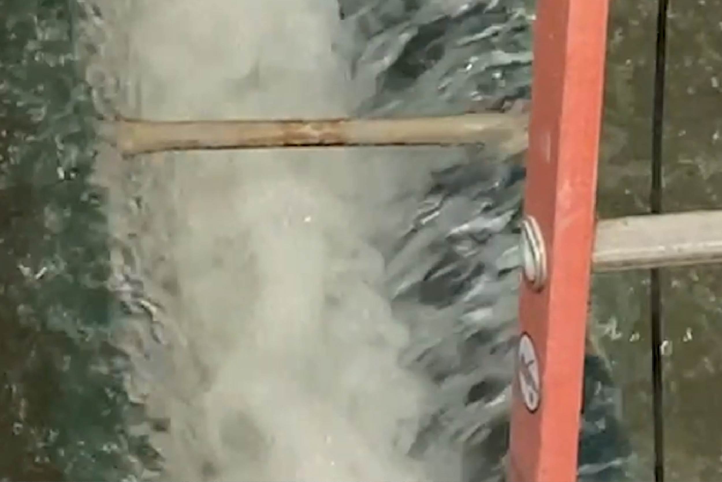 A worker prepares Aerator 3 for disassembly.A worker detaches a pipe so Aerator 3 can be removed.