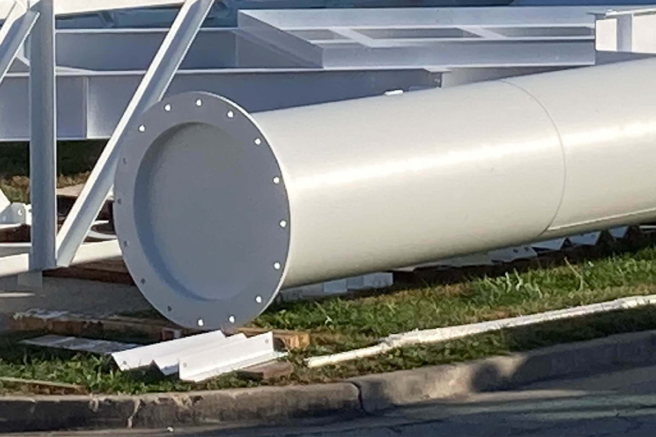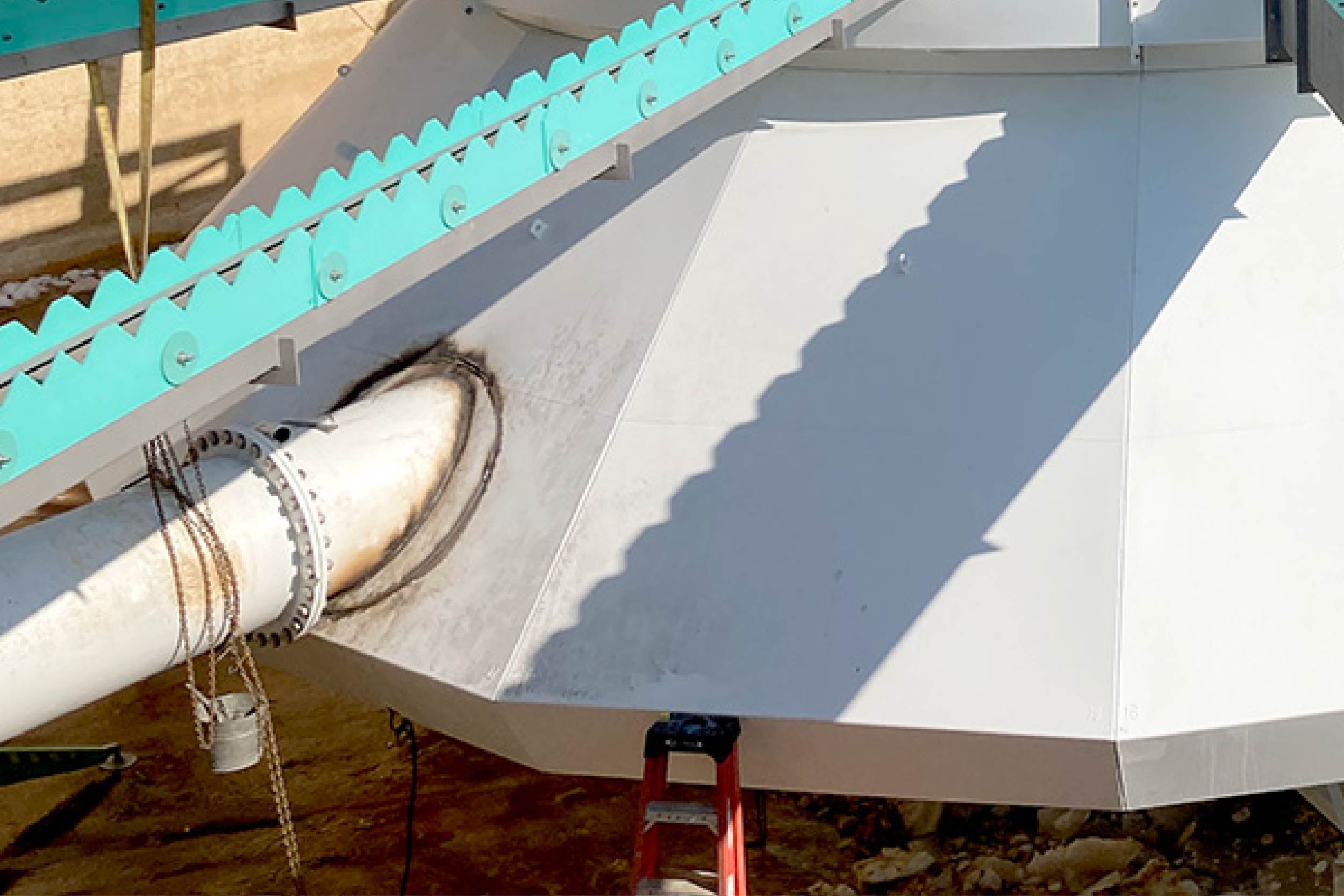 Pieces of the new clarifier and cone were strewn across the parking lot, ready for assembly.