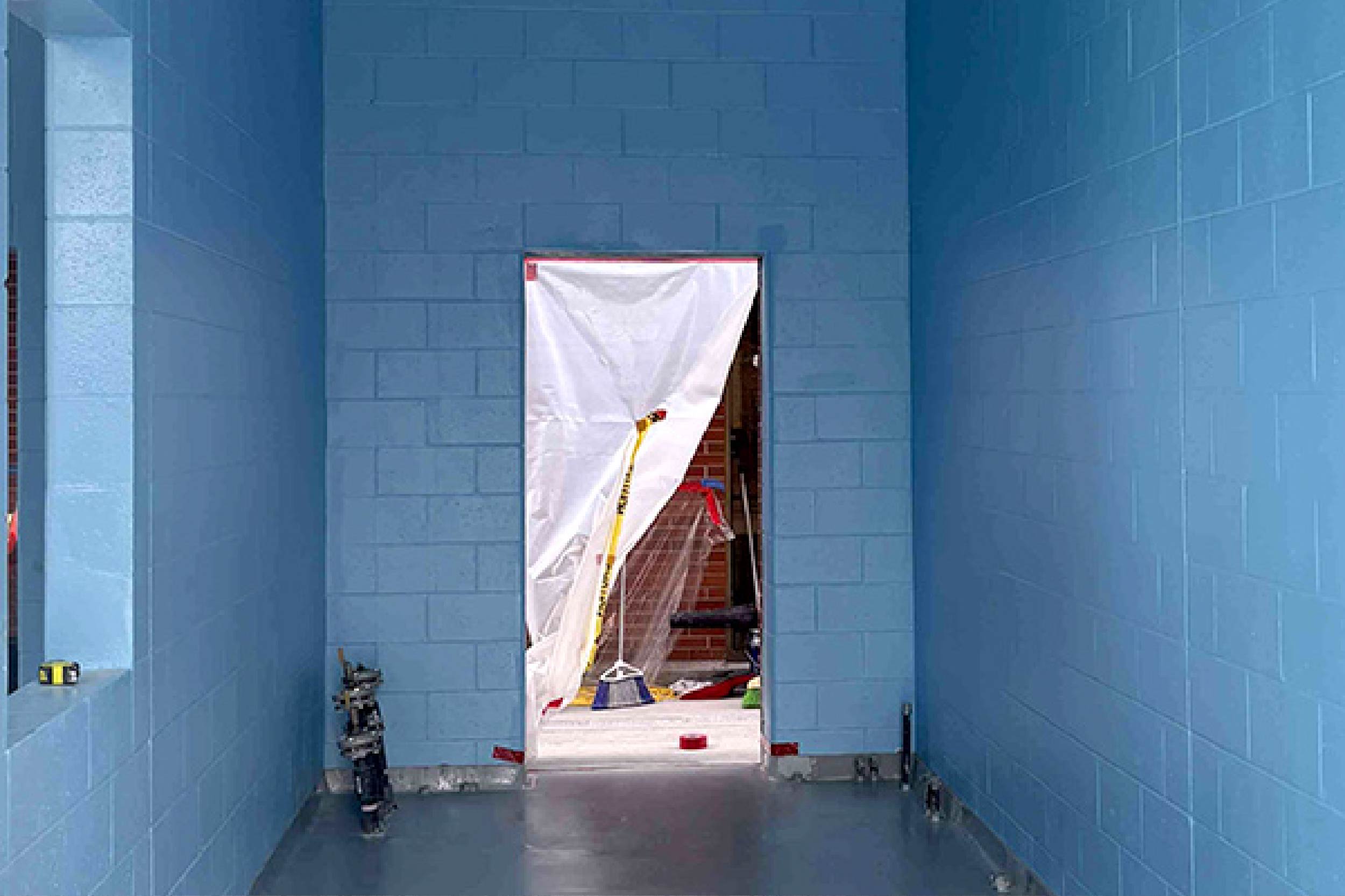 The new Chemical Building is coming together. Coatings on the walls and roof have been completed in all the rooms, and half the floor has been coated with epoxy. Engineers have started the mechanical ductwork in the building.