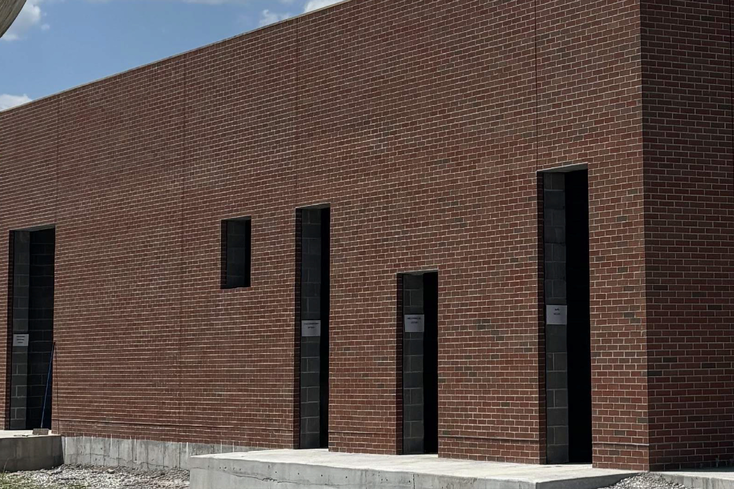 Masonry work continues at the Chemical Building. Concrete door stoops were poured. Along with exterior walls going up, the interior rooms that house the chemicals and equipment are beginning to take shape. Crews are scheduled to have the roof in place by the end of the month.
