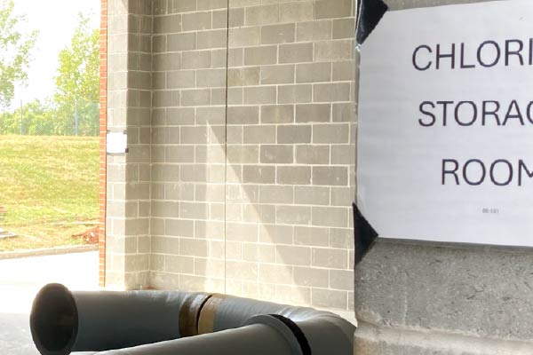 Bulk tanks at the chemical building continue to go up. The new Chemical Building will have feed rooms for chlorine, fluoride and liquid ammonium sulfate as well as a storage area for the chlorine gas. It is expected that the new chlorine system would be phased into service, starting with Basin 3 and Basin 4.